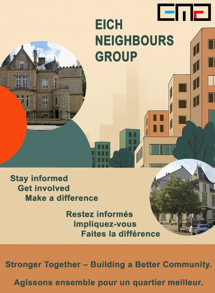 Rejoignez-nous dès 19h pour une réunion de quartier afin de faire le point sur les problématiques que rencontre le quartier d'Eich. Ce sera également l'occasion d'échanger ensemble pour trouver des solutions.
